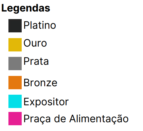 Conforme os patrocinadores e colaboradores confirmarem a presença no evento, os mesmos serão locados no mapa principal, conforme o setor de atuação da empresa. Com trinta dias de antecedência ao evento, será enviado o mapa oficial com a localização de cada patrocinador. Após essa divulgação, os patrocinadores poderão visitar a área para organização interna, sendo necessário agendamento prévio.
